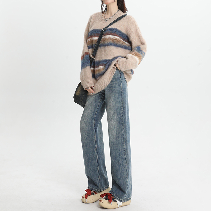 宽松窄版阔腿牛仔裤女2025秋冬新款加绒裤子高腰显瘦小个子直筒裤,广东 广州