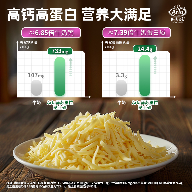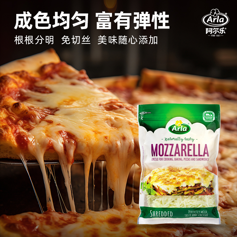 Arla阿尔乐马苏里拉芝士碎拉披萨丝焗饭烘焙家用材料丹麦进口175g,上海