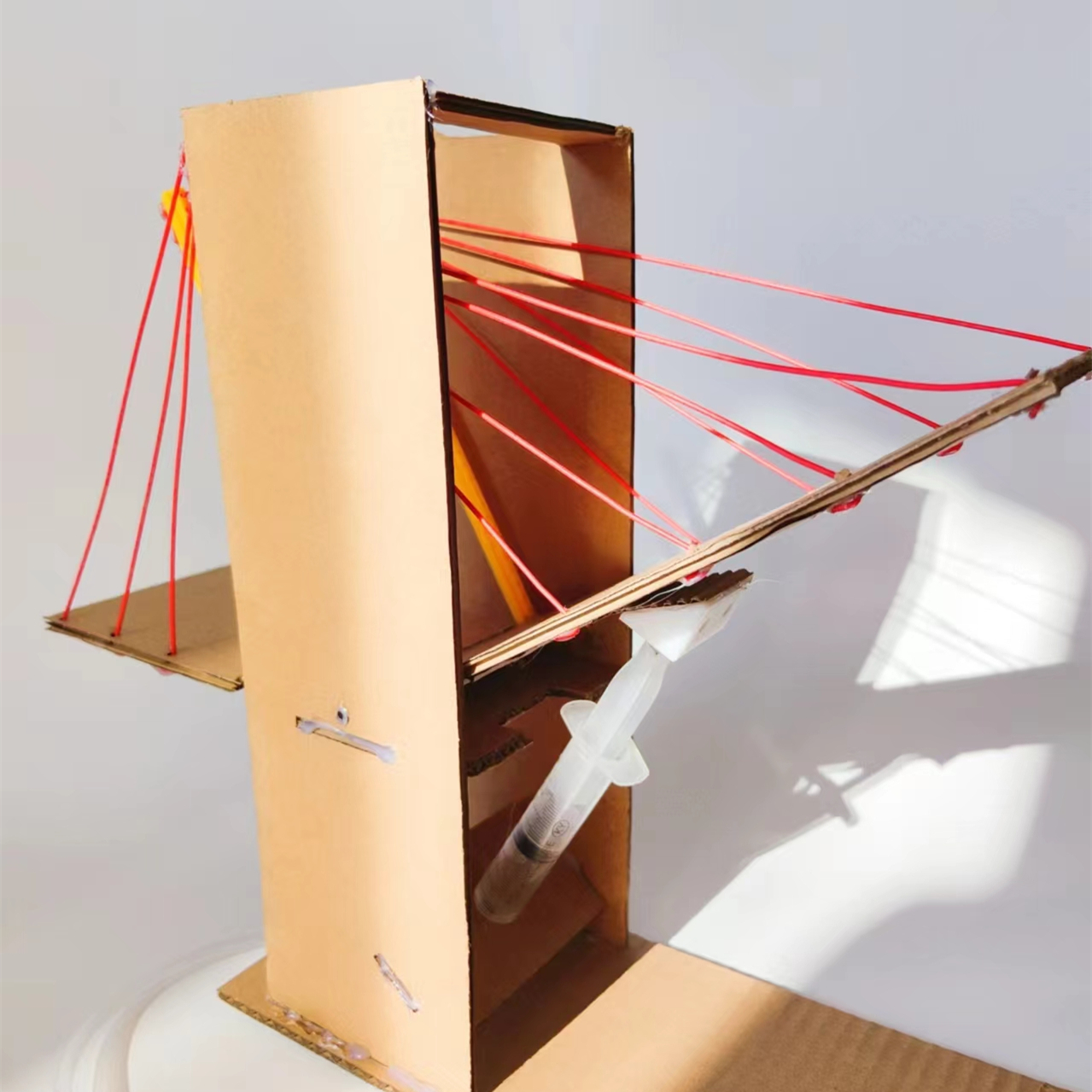 新款儿童液压升降桥手工材料包废物利用纸板制作工程建筑立体作品