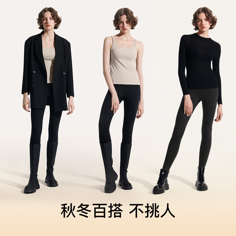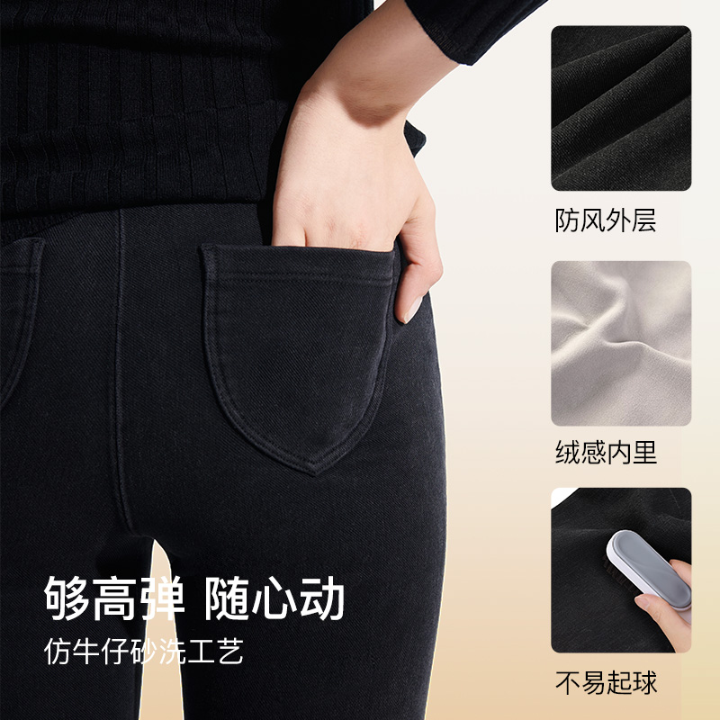 ubras仿牛仔高腰保暖防风加绒加厚高弹外穿长裤打底裤鲨鱼裤女