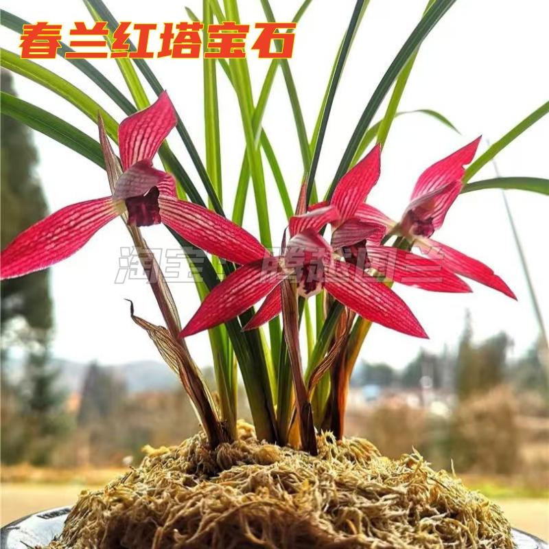 名贵兰花苗春兰红塔宝石浓香好养红花室内客厅茶室好养绿植花卉