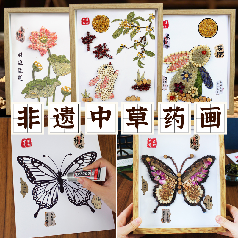 非遗中草药香氛画中医药中药拼贴画文创手工diy材料包中秋节作品