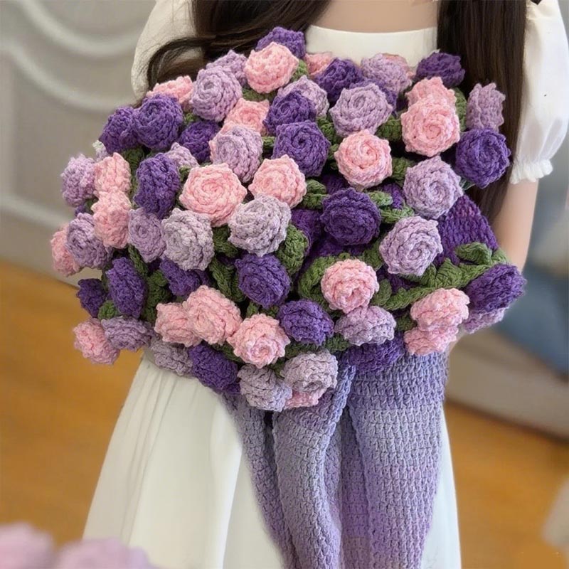 优质升级渐变紫色玫瑰花毯子材料包手工diy编织毛线自制毛毯礼物,浙江 金华