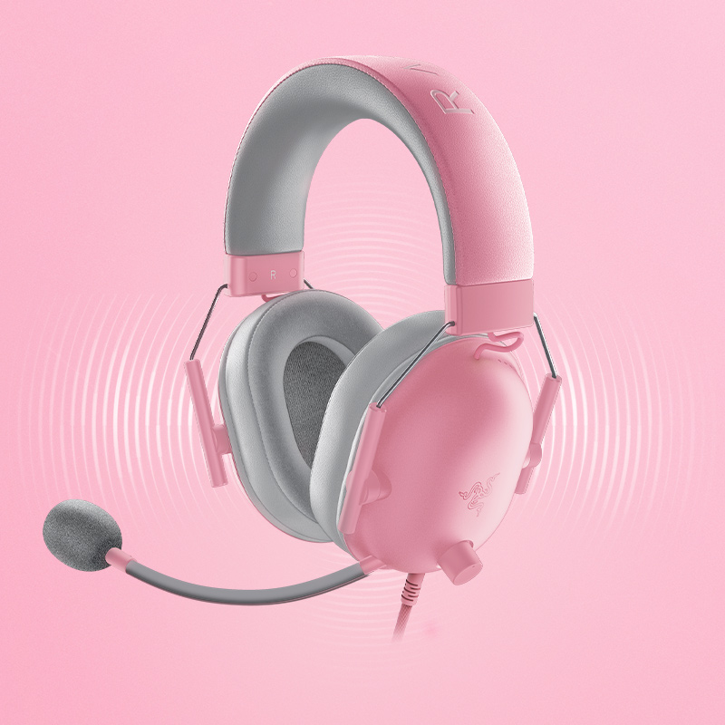 Razer雷蛇旋风黑鲨V2 X 粉晶头戴式电竞游戏耳机PS兼容环绕声礼物