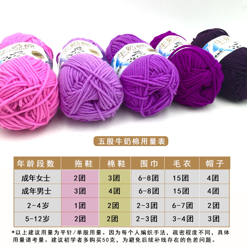 5股中粗牛奶棉线宝宝手工编织棉鞋鞋面勾毛线拖鞋diy围巾材料包