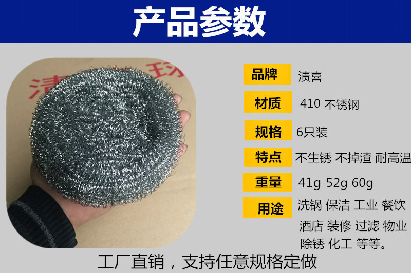 超大钢丝球大号不锈钢清洁球厨房洗锅刷60 80克特大铁丝球商用50G,安徽 六安