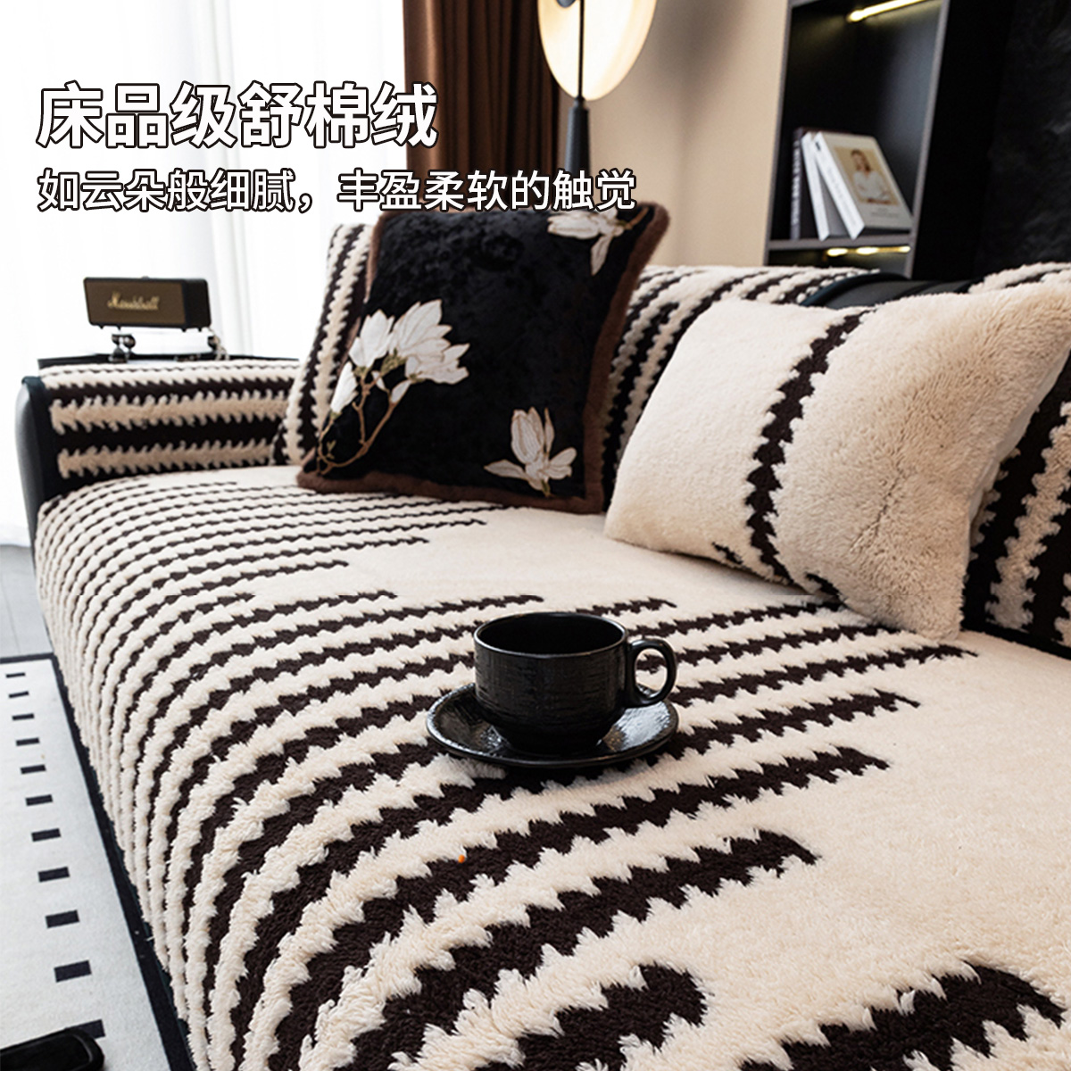 金柠檬居家布艺高级感舒棉绒沙发垫加厚秋冬毛绒坐垫复古客厅坐垫