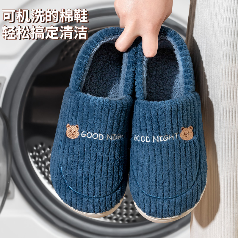 棉鞋男冬室内家居防滑保暖情侣居家用包跟软底冬款毛拖鞋女,浙江 绍兴