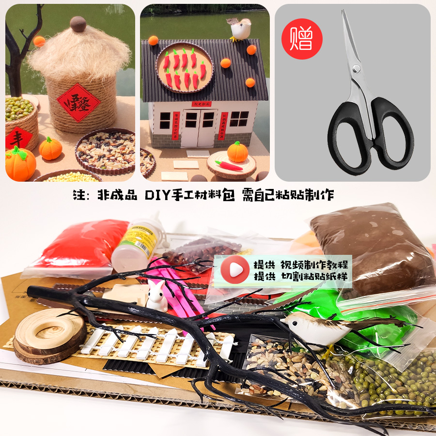 幼儿园亲子diy手工制作小屋房子材料包树枝废物利用粮仓秋天丰收