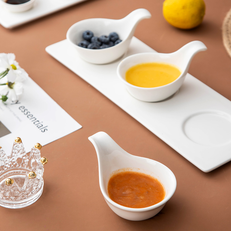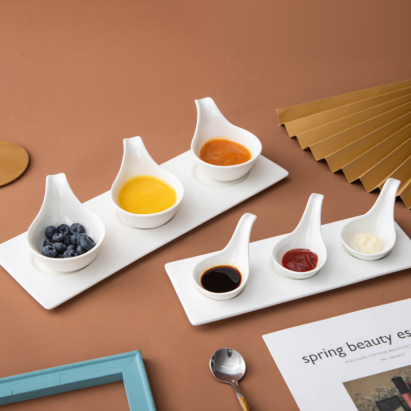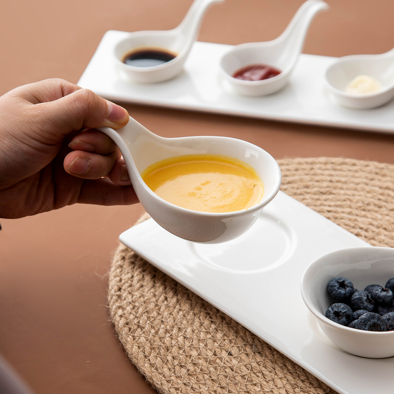 日式酱料调味碟酒店摆台创意甜品凉菜小碟子带把鱼子酱勺套装,广东 潮州