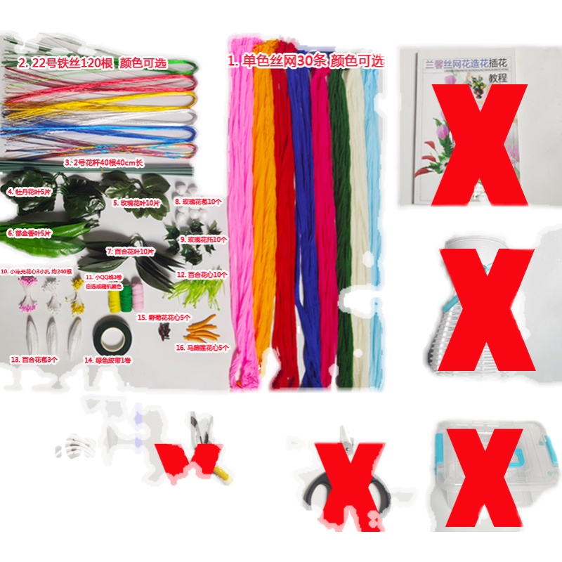 包邮新手入门丝网花材料包多种花手工丝袜花材料套装不褪色包学会,四川 成都