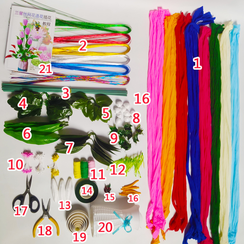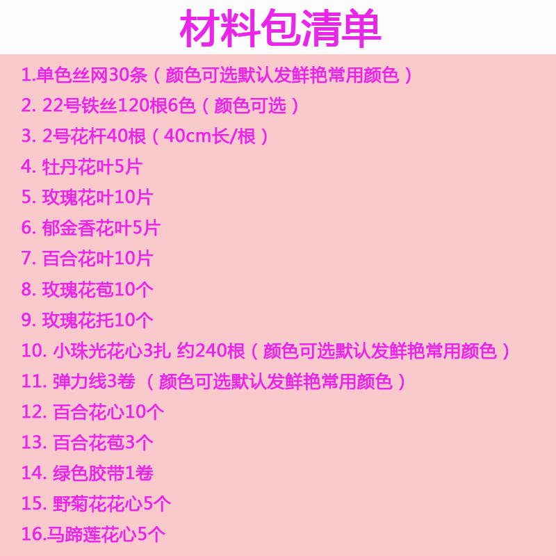 包邮新手入门丝网花材料包多种花手工丝袜花材料套装不褪色包学会