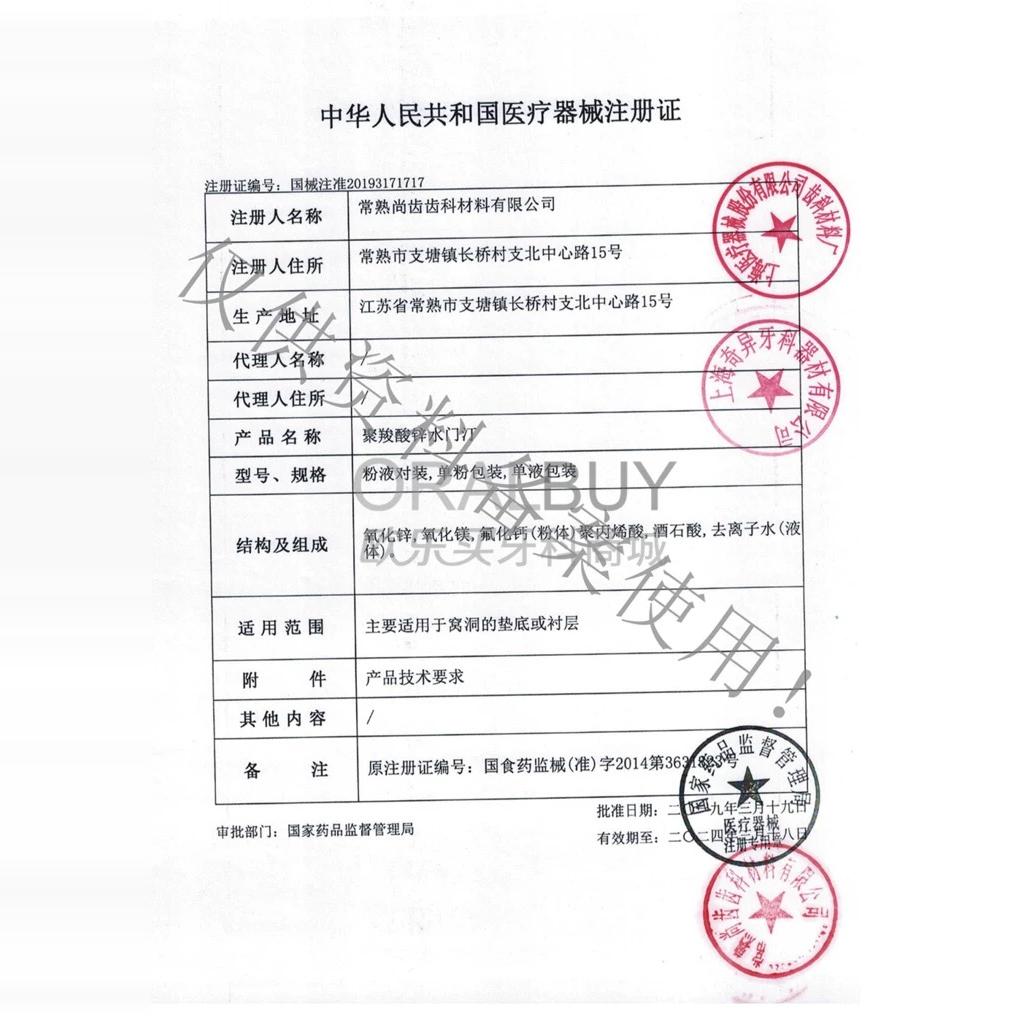 牙科材料上齿聚羧酸锌水门汀上海聚羧酸锌烤瓷牙粘结聚羧酸口腔