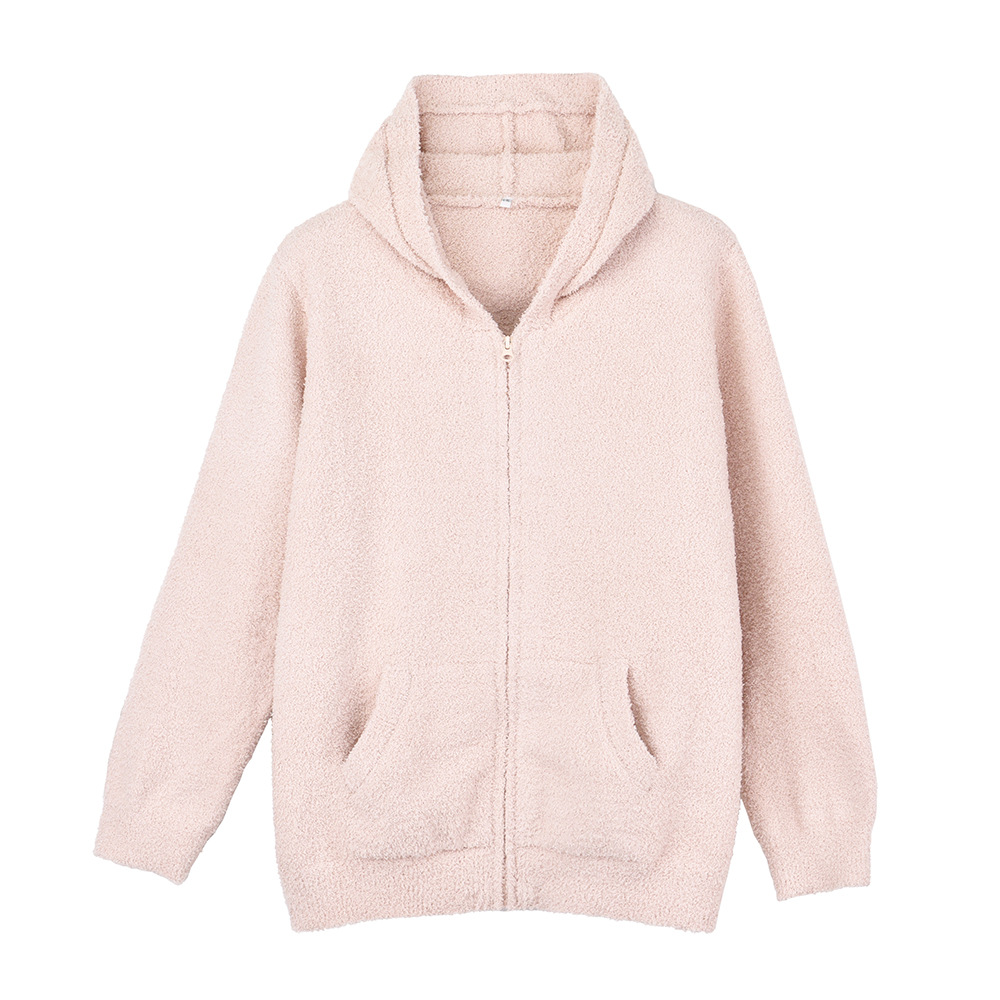 专柜同款无印女式发热毛毛纱家居服连帽开衫女士睡衣秋冬浴袍睡裙,江苏 南通