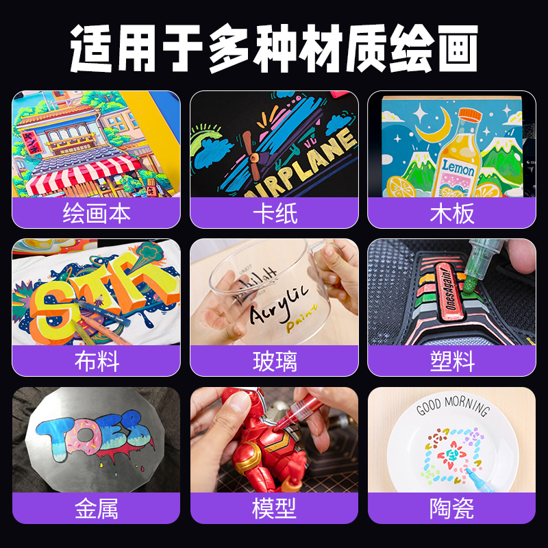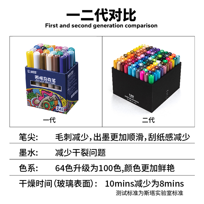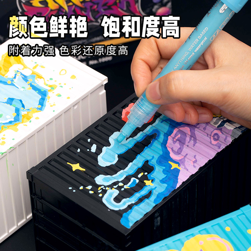 STA斯塔丙烯马克笔细头 防水手绘DIY画鞋丙烯颜料笔不透色100色学生彩虹笔儿童涂鸦笔衣服鞋子高达皮肤色套装