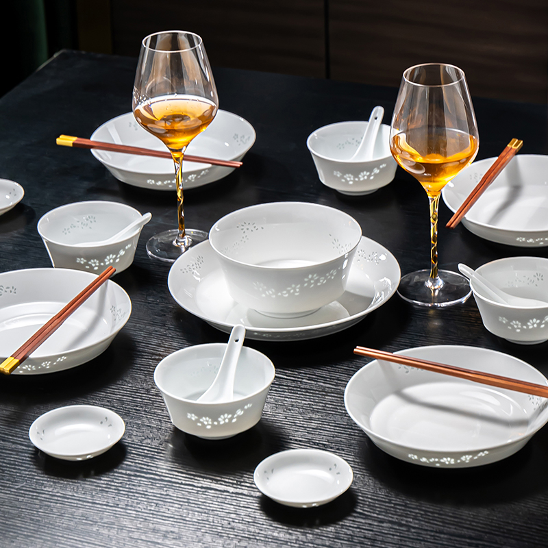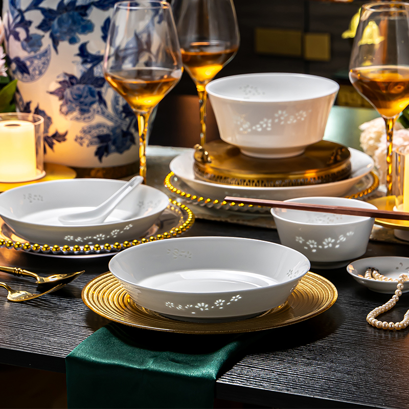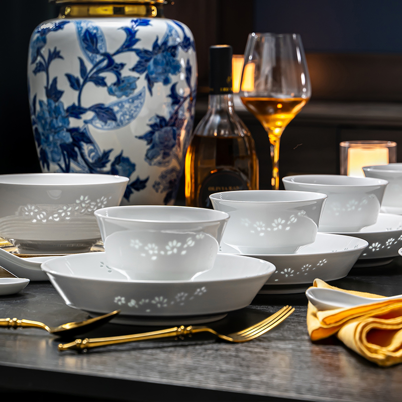 富玉陶瓷景德镇釉下彩餐具套装轻奢高级感高温白瓷玲珑家用碗碟盘,江西 景德镇