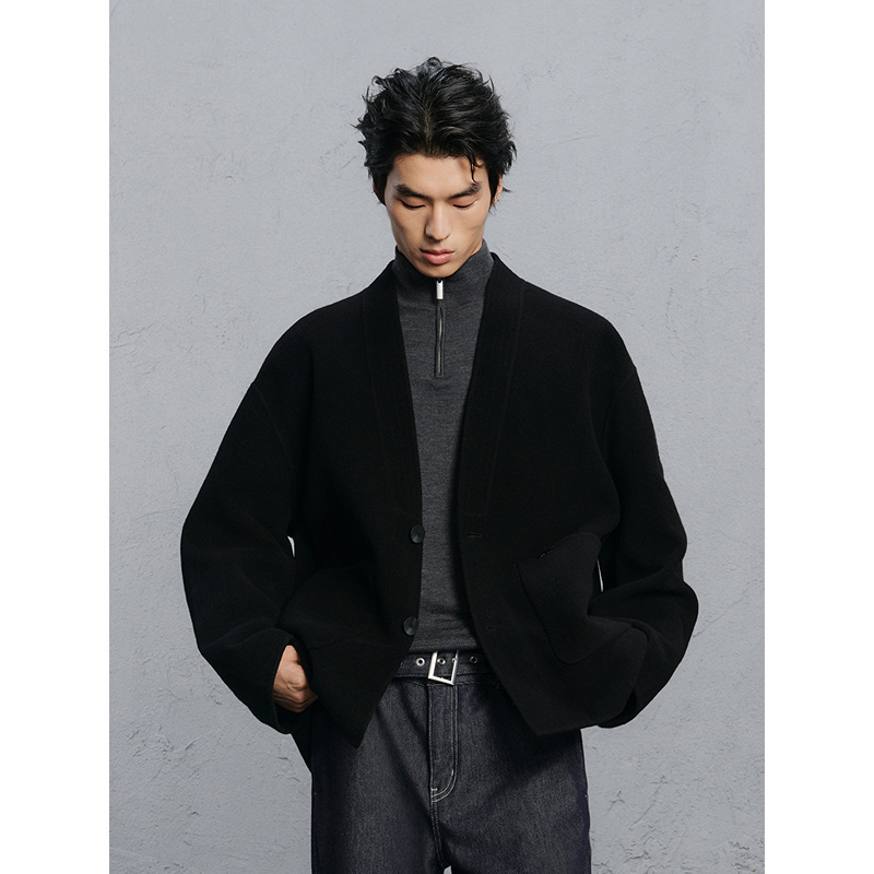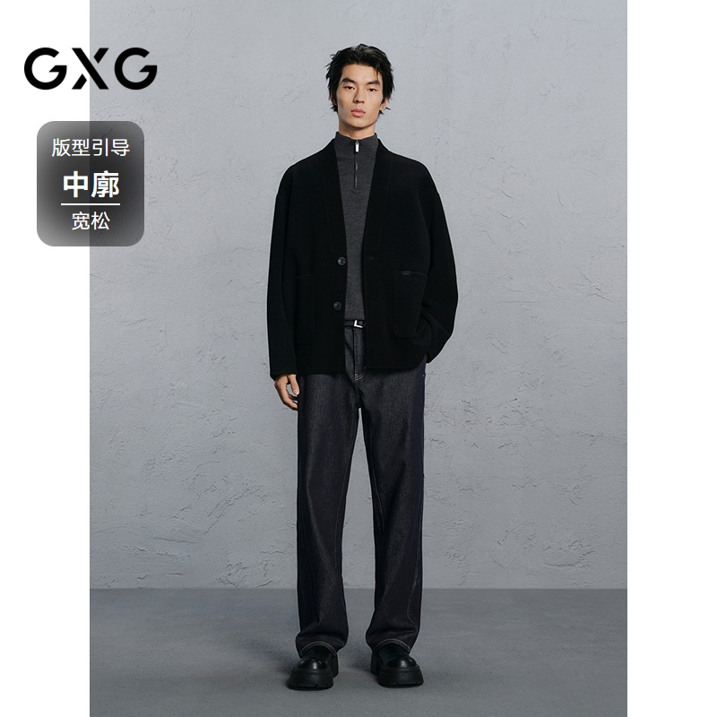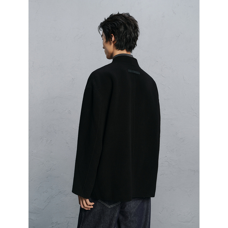 GXG男装 黑色无领设计通勤短款大衣 24冬品G24X064016