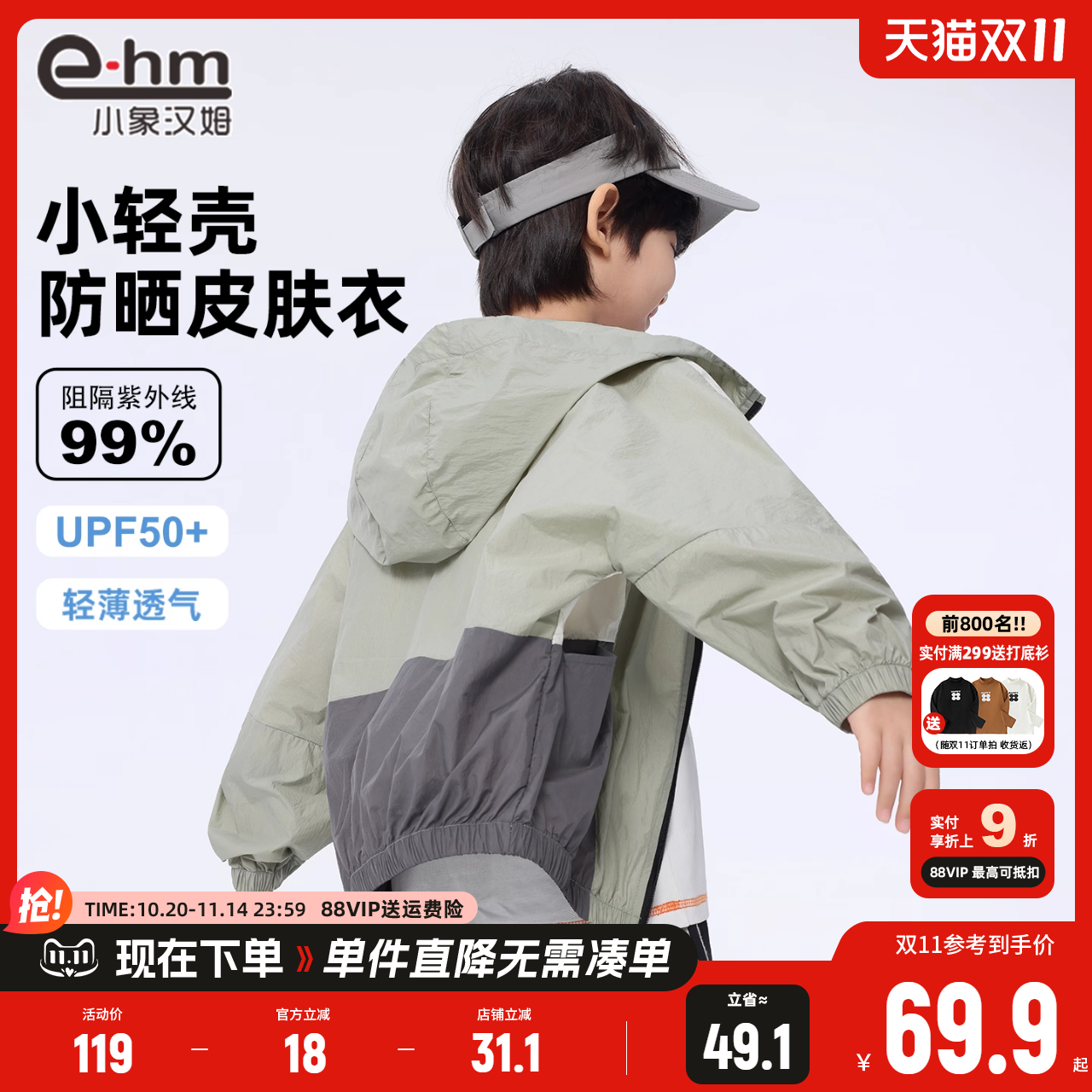 小象汉姆童装男童防晒衣夏季UPF50+儿童薄外套2025新款皮肤衣洋气,浙江 台州