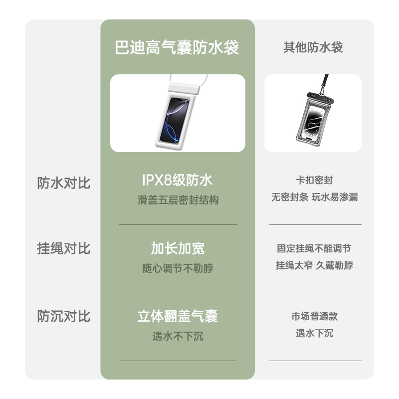 气囊手机防水袋可触屏拍照游泳专用漂流装备潜水上乐园透明防水套