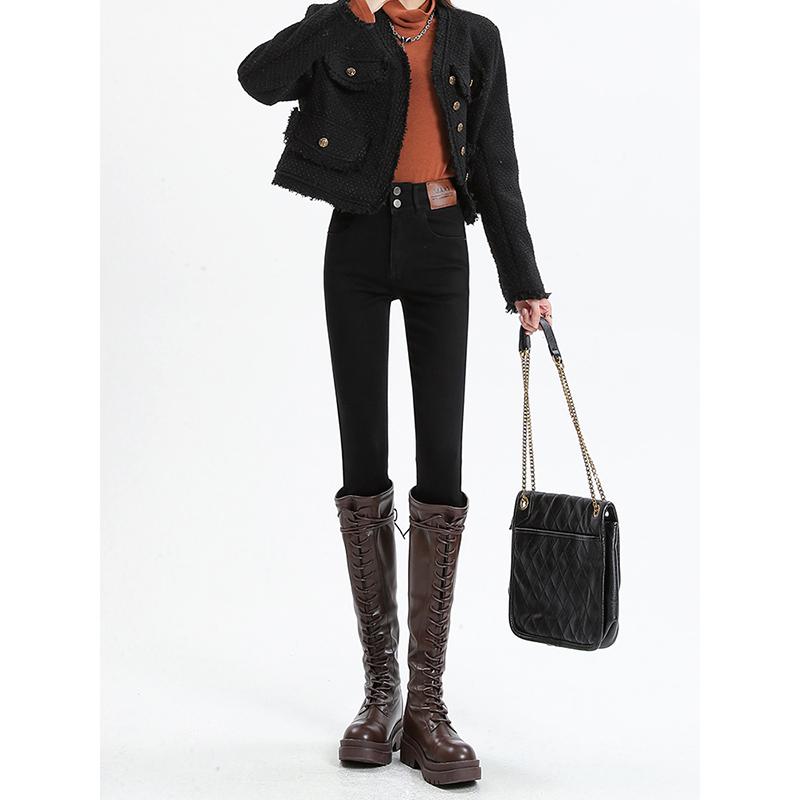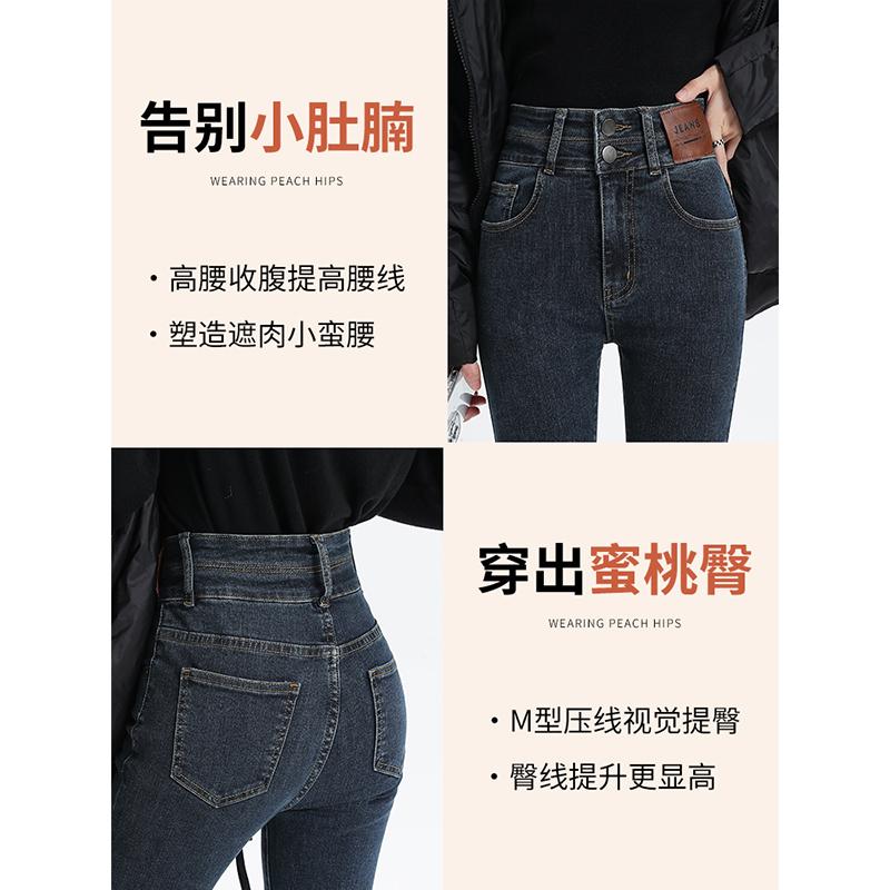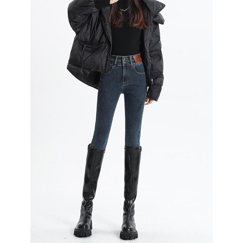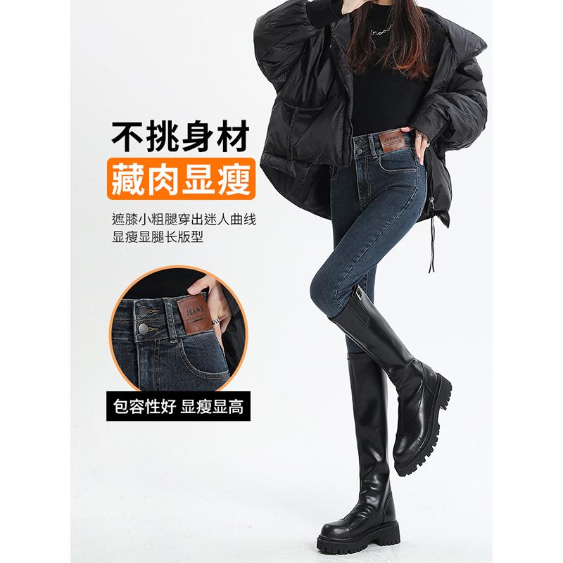深色紧身小脚牛仔裤女春季2025新款高腰修身显瘦小个子加绒铅笔裤