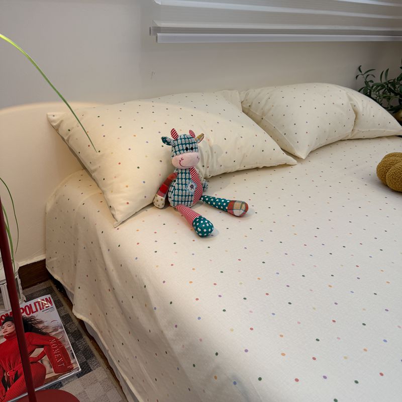 小清新100全棉双层纱纯棉床单单件简约波点被单床笠床垫保护罩1.5,江苏 南通
