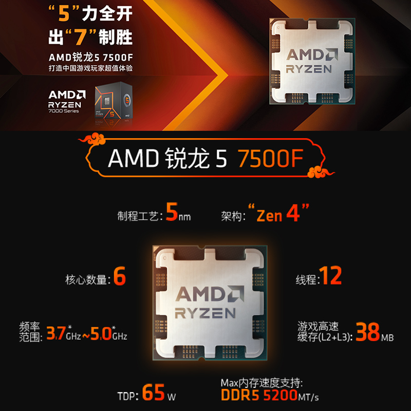 AMD官方正品 r5 9600x/7500/r7 9700x搭华硕B650主板cpu套装