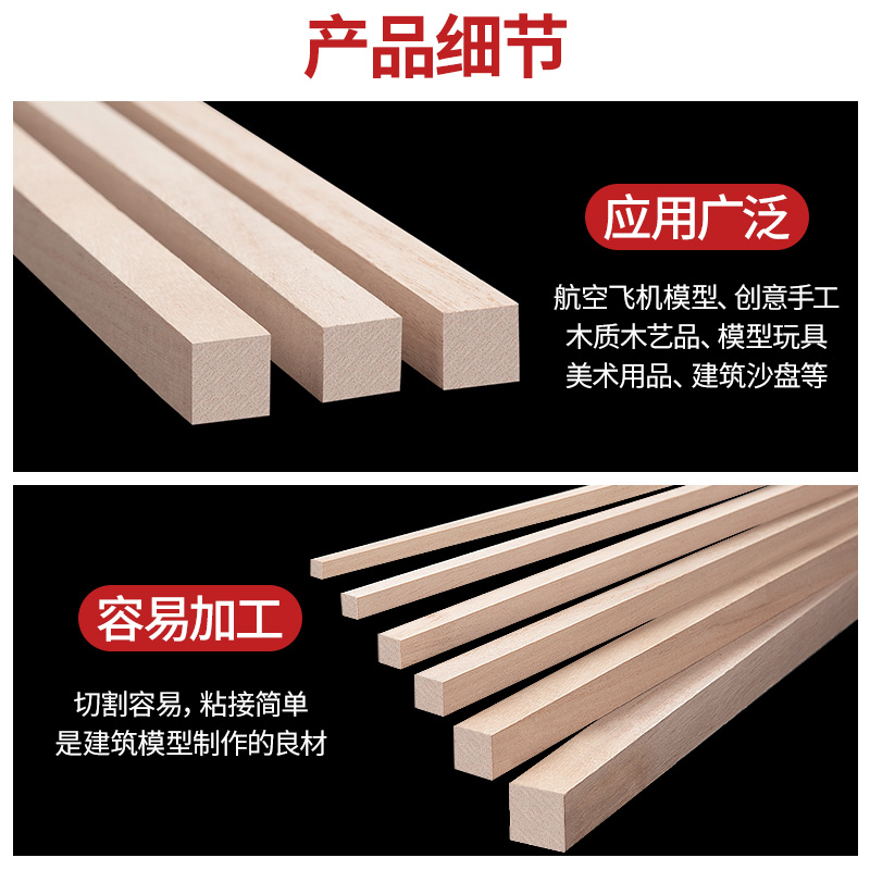 木条实木diy手工制作模型立体构成材料小木屋细木条方木棍桐木条