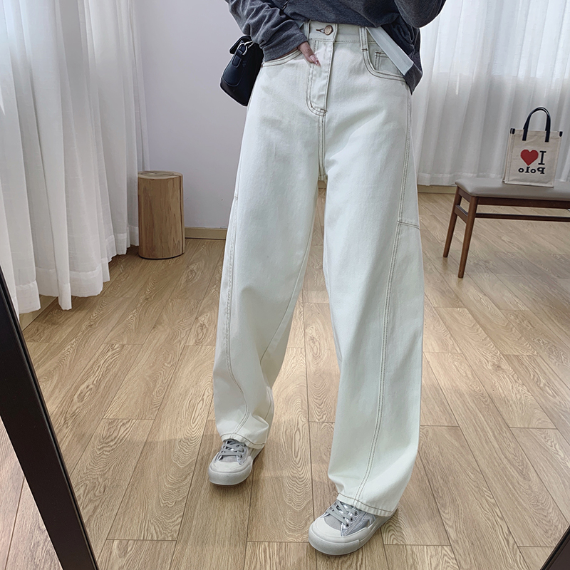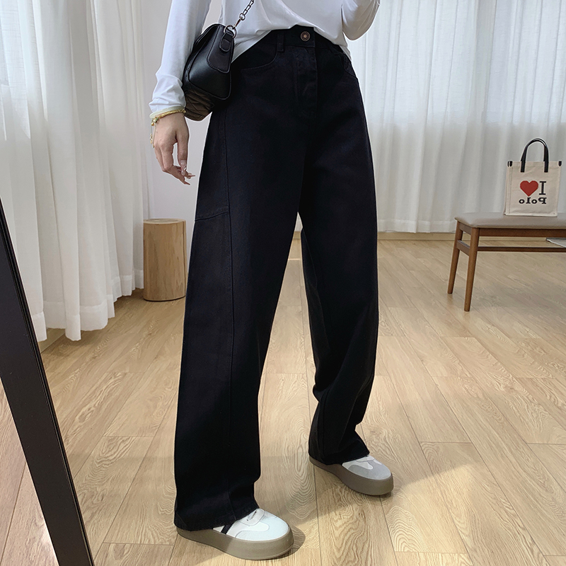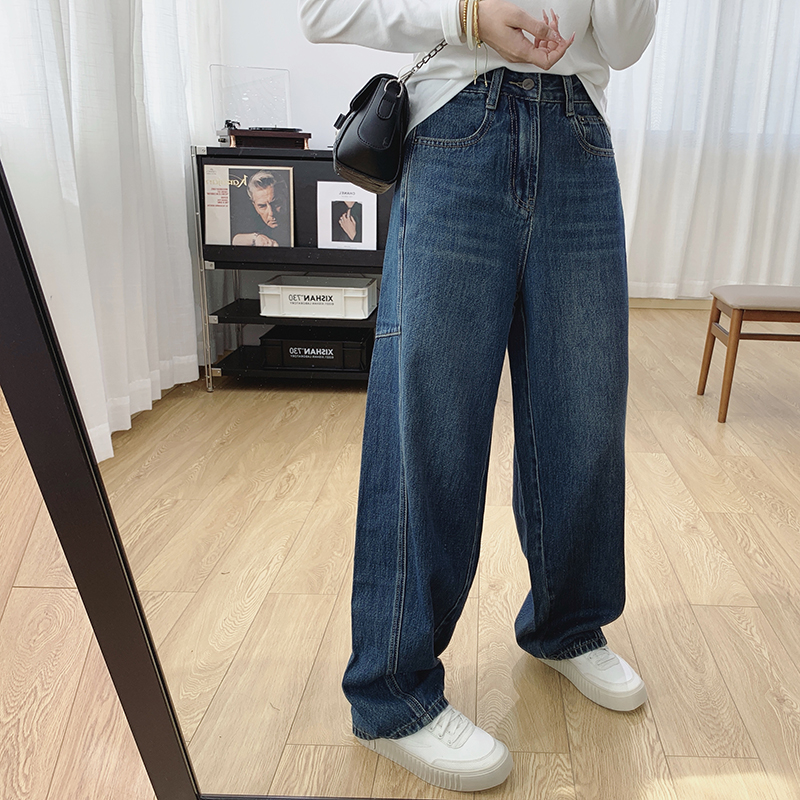 防褪色高腰显瘦茧型镰刀裤女秋冬裤子宽松直筒弯刀牛仔阔腿裤长裤