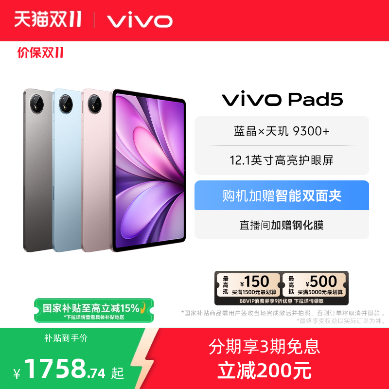 【国补平板 9折消费券】vivo Pad5平板电脑新款天玑9300+学生官方正品12.1英寸国补,广东 东莞