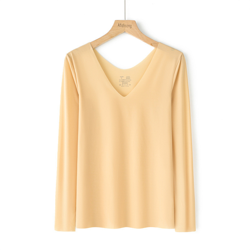玻尿酸皮肤衣V领秋衣女薄款无痕肤色打底衣隐形肌底衣低领面膜衣