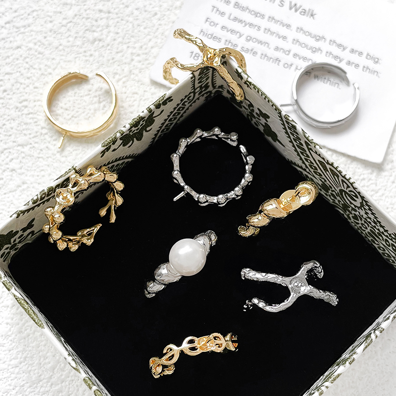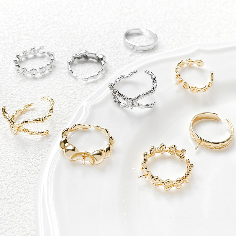 铜包金保色18k镂空戒指珍珠托戒托diy手工饰品指环配件材料,浙江 金华