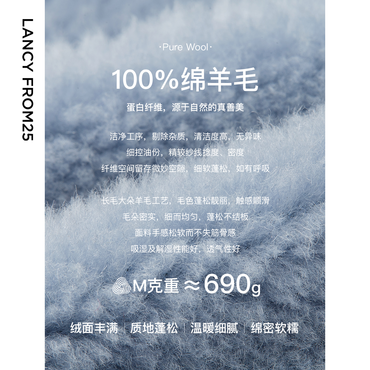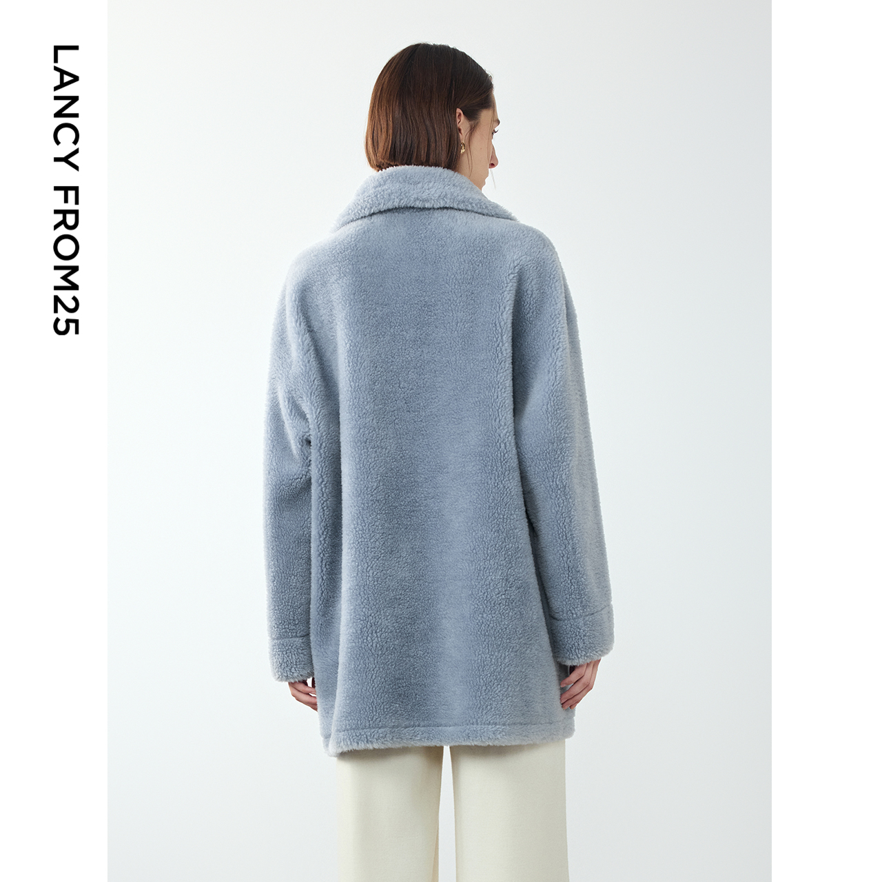【王楚然同款】朗姿纯羊毛高级感颗粒绒大衣外套2024冬新款仿皮草