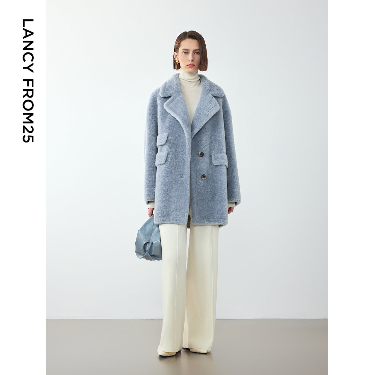 【王楚然同款】朗姿纯羊毛高级感颗粒绒大衣外套2024冬新款仿皮草,北京