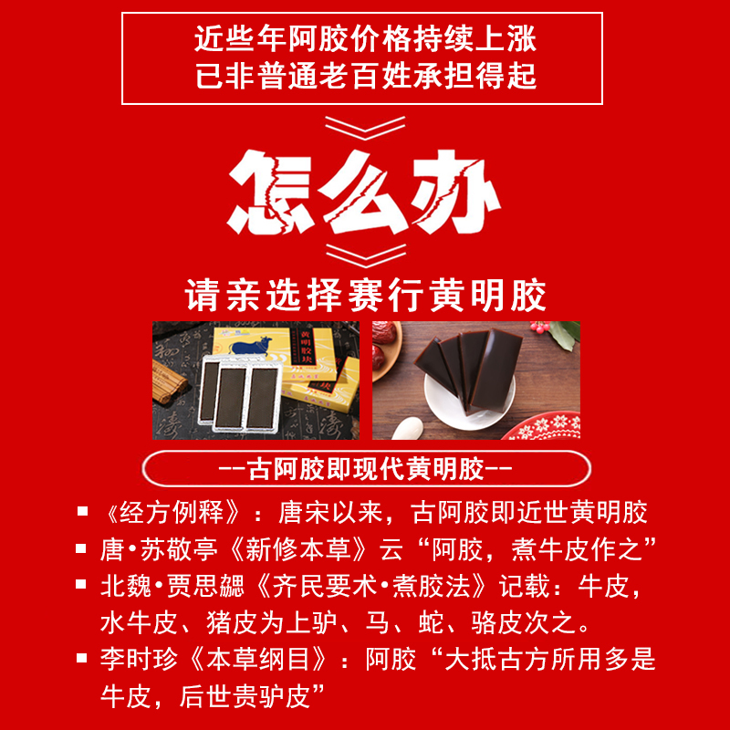 赛行阿胶黄明胶250g盒装正牛皮胶原片品手工阿胶糕原材料块