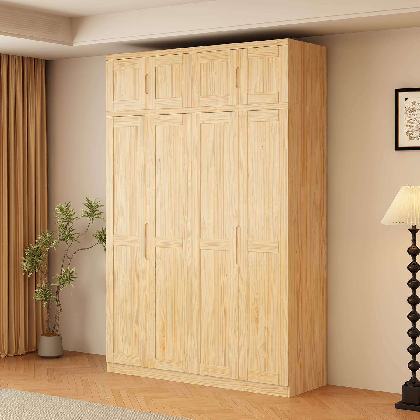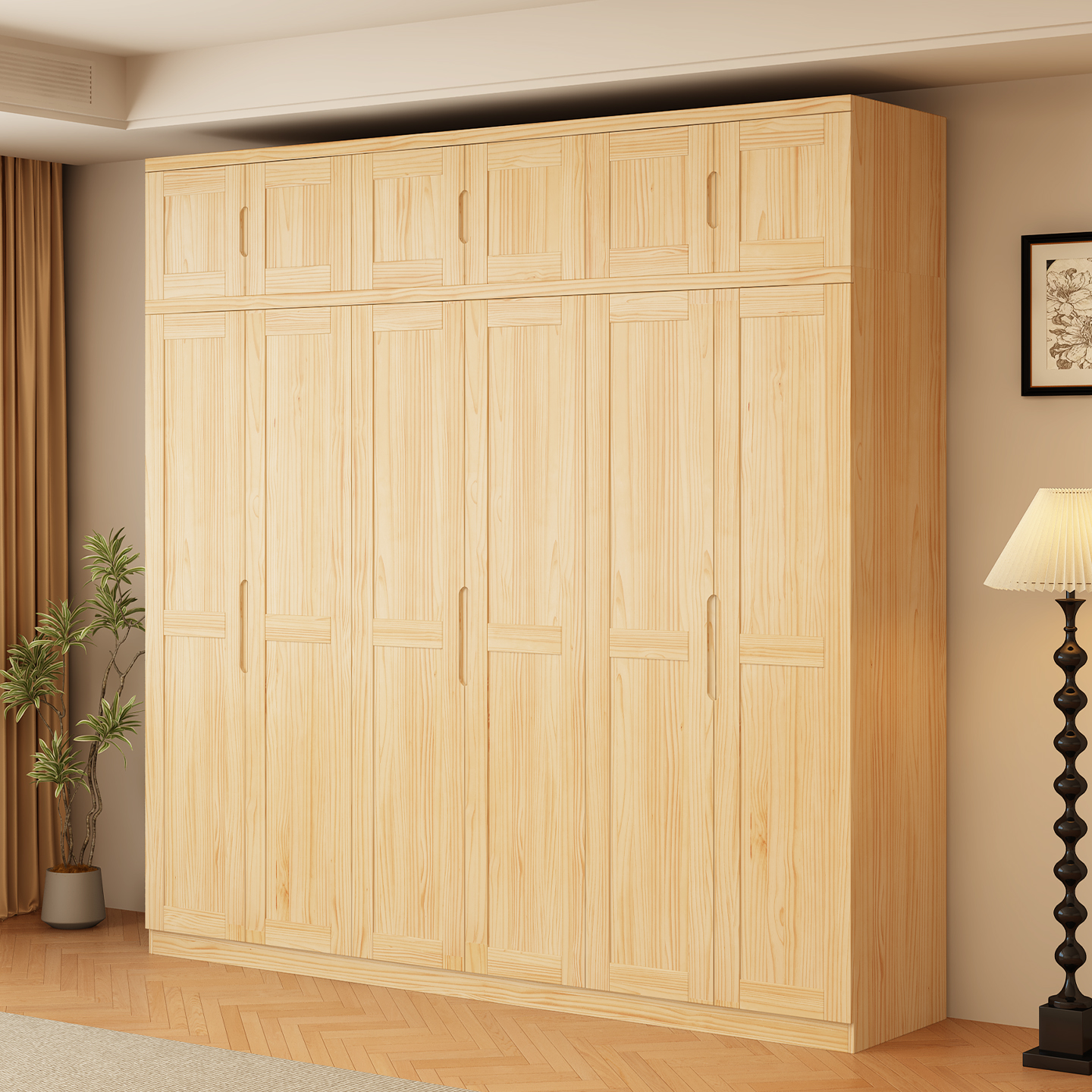 全实木衣柜松木平开门卧室加高2米3四五六门衣橱家用成人儿童收纳