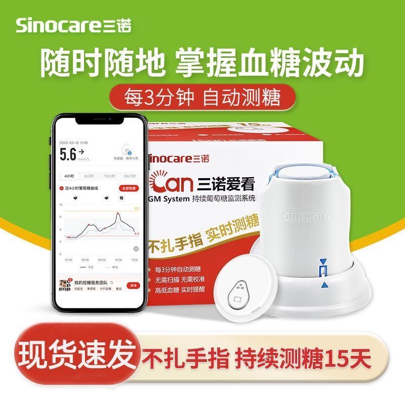 三诺爱看动态血糖仪24小时持续智能测量免扎手指血糖检测仪传感器,江苏 苏州