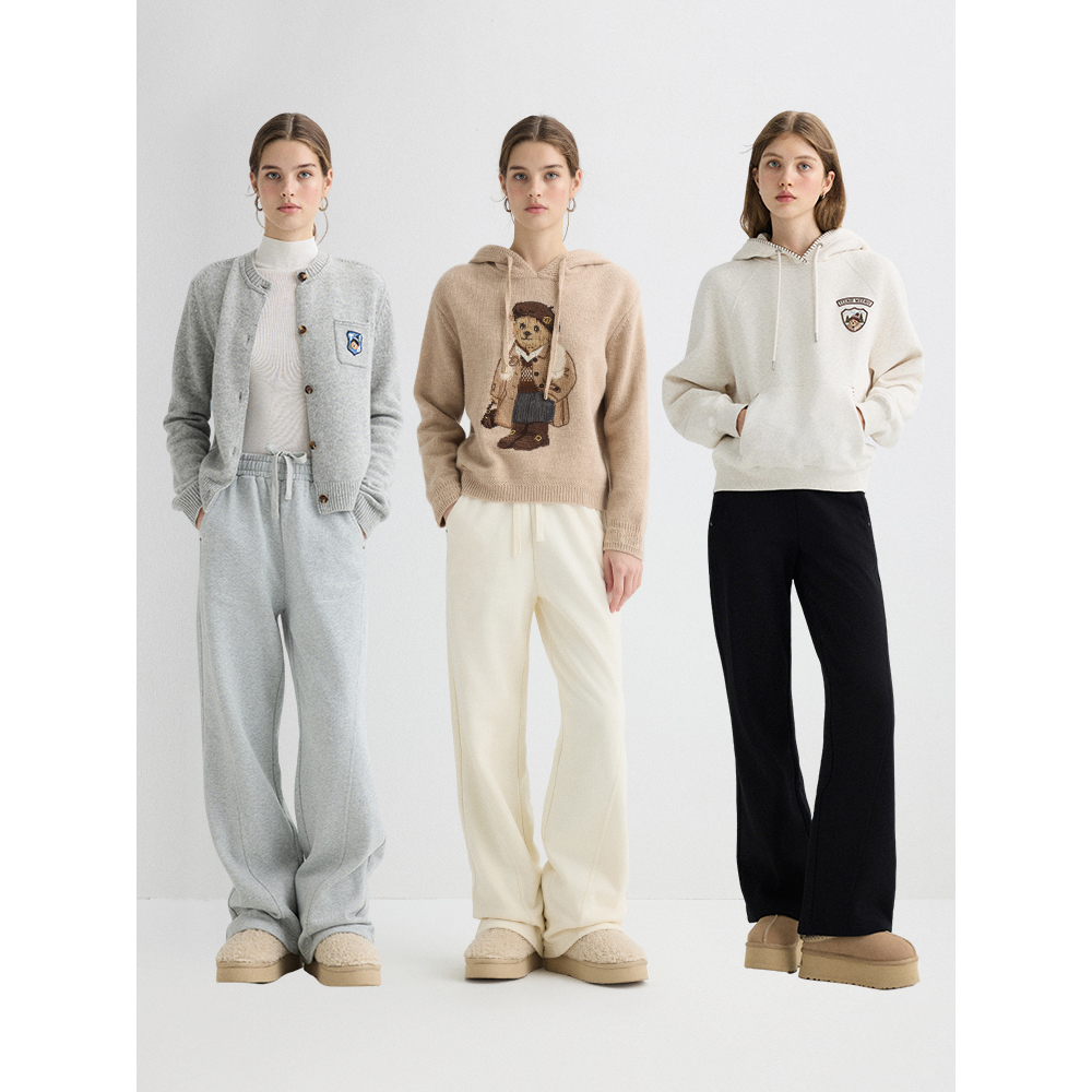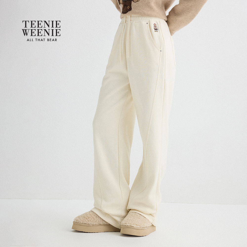 TeenieWeenie小熊女装卫裤2025秋新款简约高腰宽松舒适直筒休闲裤,浙江 嘉兴