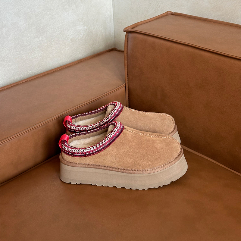 河南桑坡羊皮毛一体厚底民族风雪地靴女冬季加厚保暖舒适包头拖鞋