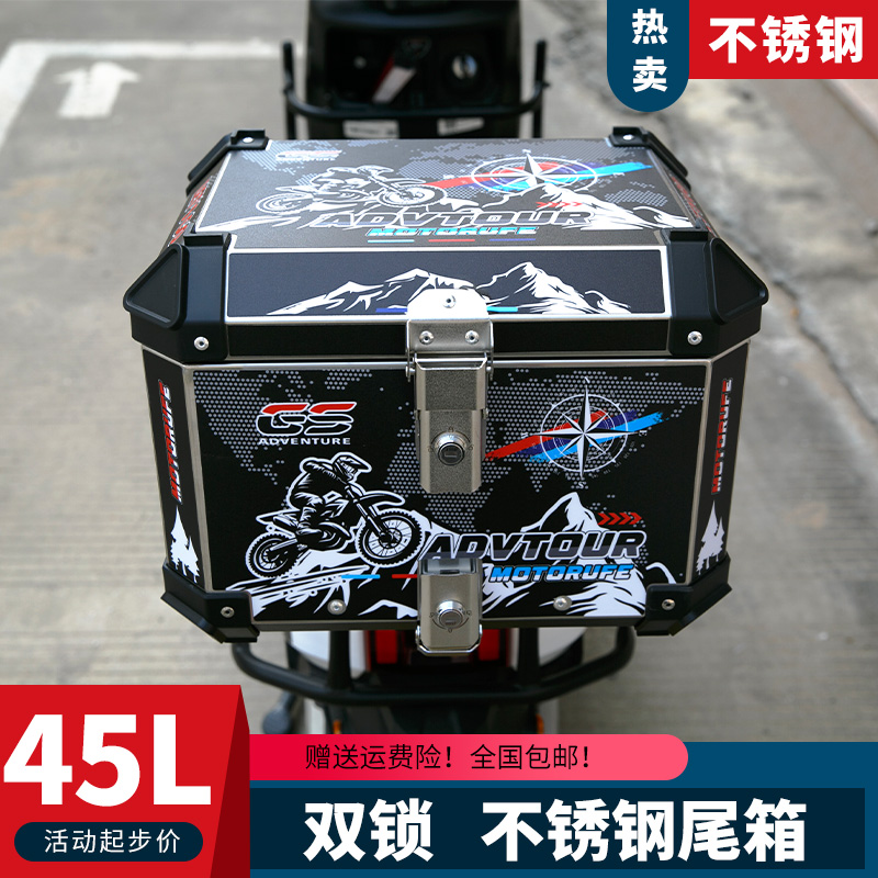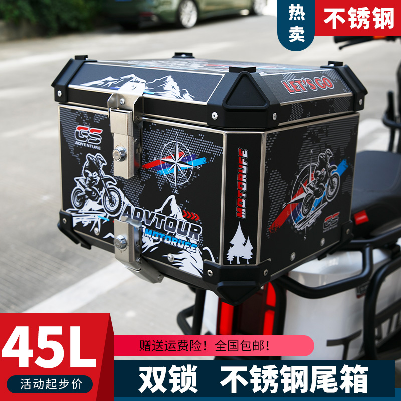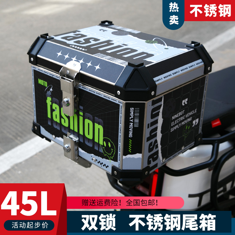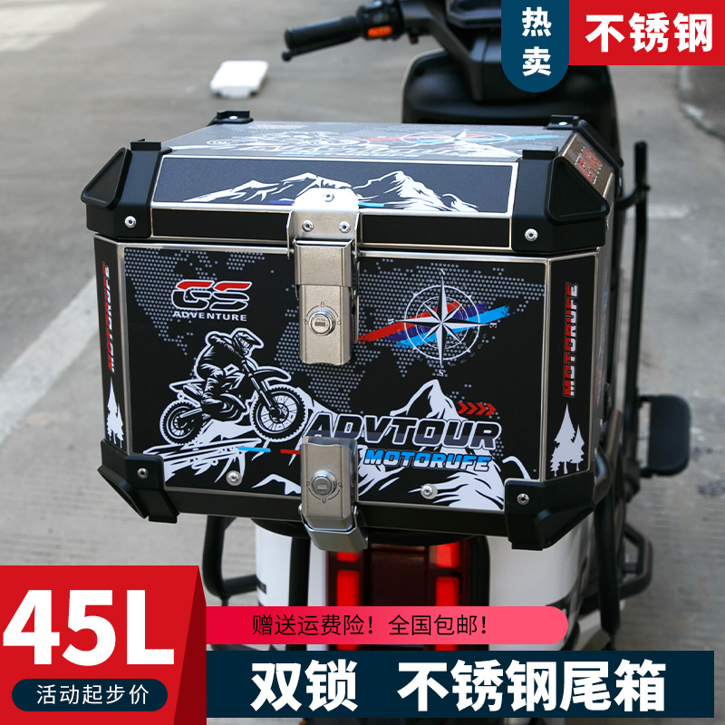 双锁摩托车不锈钢后尾箱快拆储物电瓶电动车后背箱加厚大容量通用