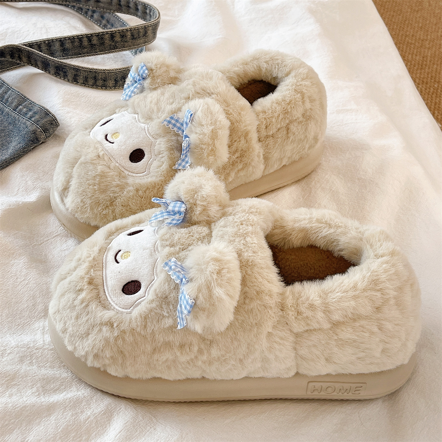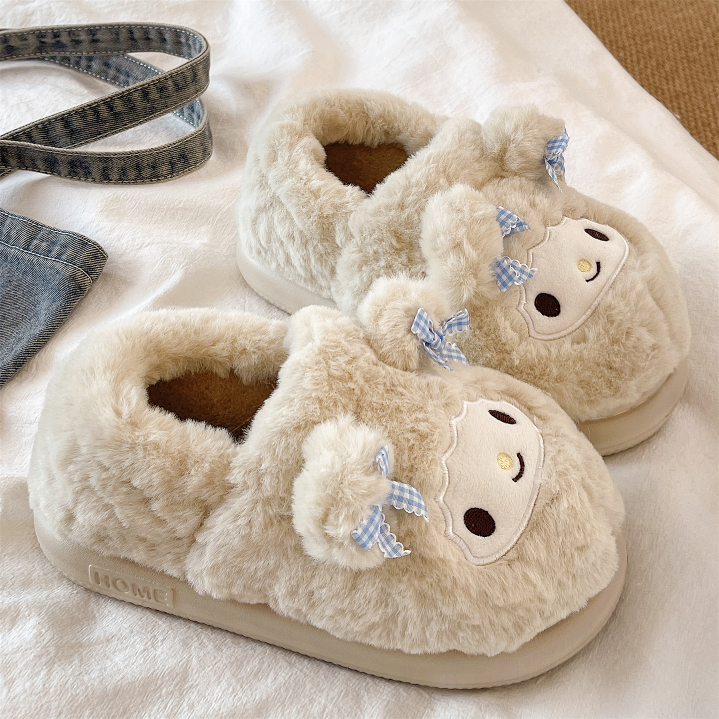 月子棉鞋女冬季外穿厚底防滑可爱小羊居家保暖加绒毛毛包跟棉拖鞋,浙江 宁波