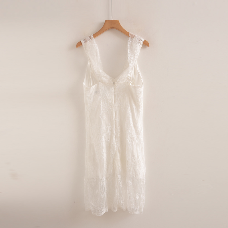 夏季女外贸纯色无袖镂空钩花蕾丝裙双层防透气质显瘦连衣裙