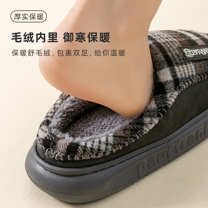 双11大嘴猴棉拖鞋冬居家男士棉鞋女情侣厚底防滑耐磨格子平底毛绒,浙江 宁波
