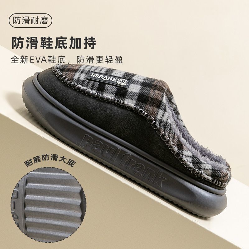 双11大嘴猴棉拖鞋冬居家男士棉鞋女情侣厚底防滑耐磨格子平底毛绒