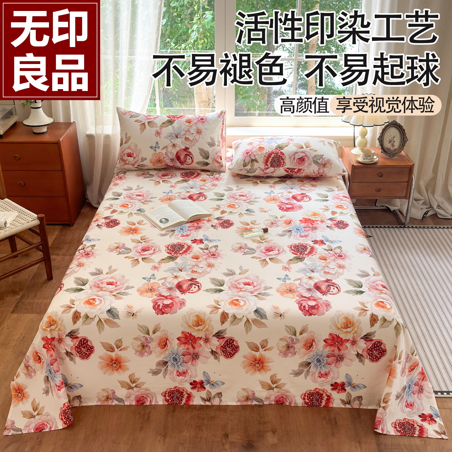 A类纯棉 无印良品磨毛床单单件100全棉 复古高级感被单秋冬季床罩