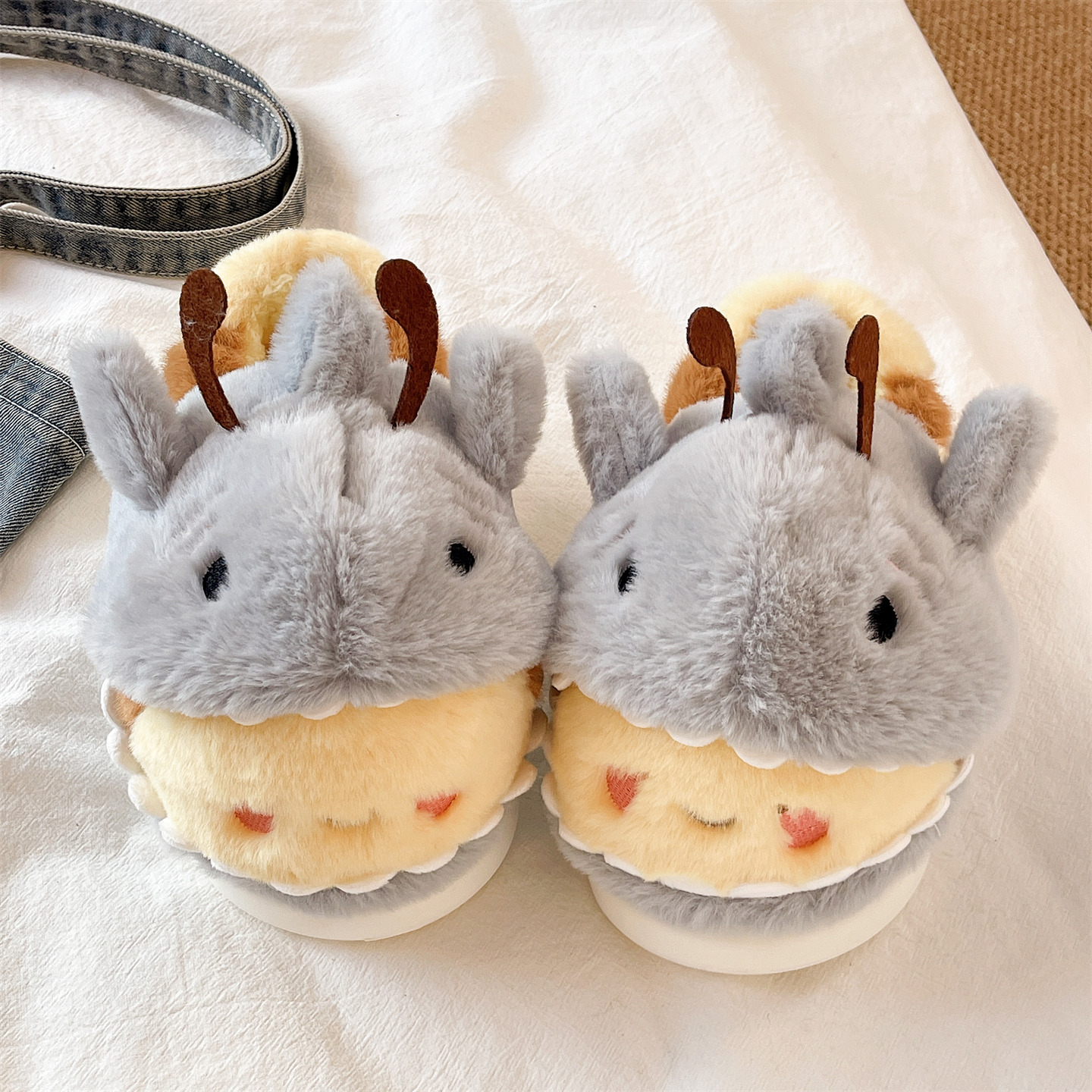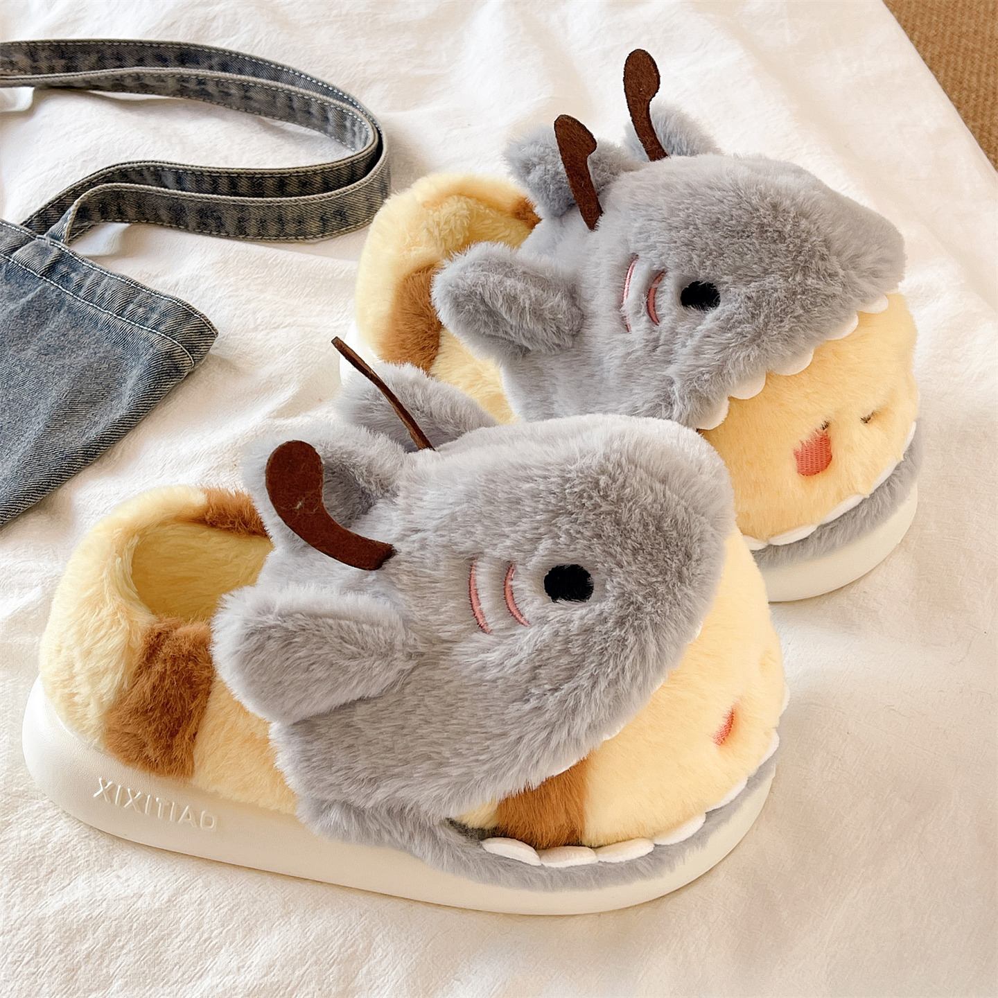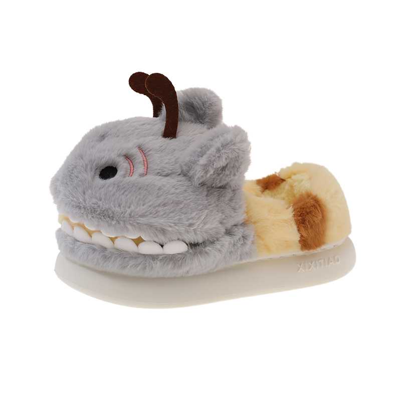 趣味可爱鲨帽蜜蜂棉拖鞋女冬季居家室内毛绒保暖防滑学生包跟棉鞋,浙江 宁波