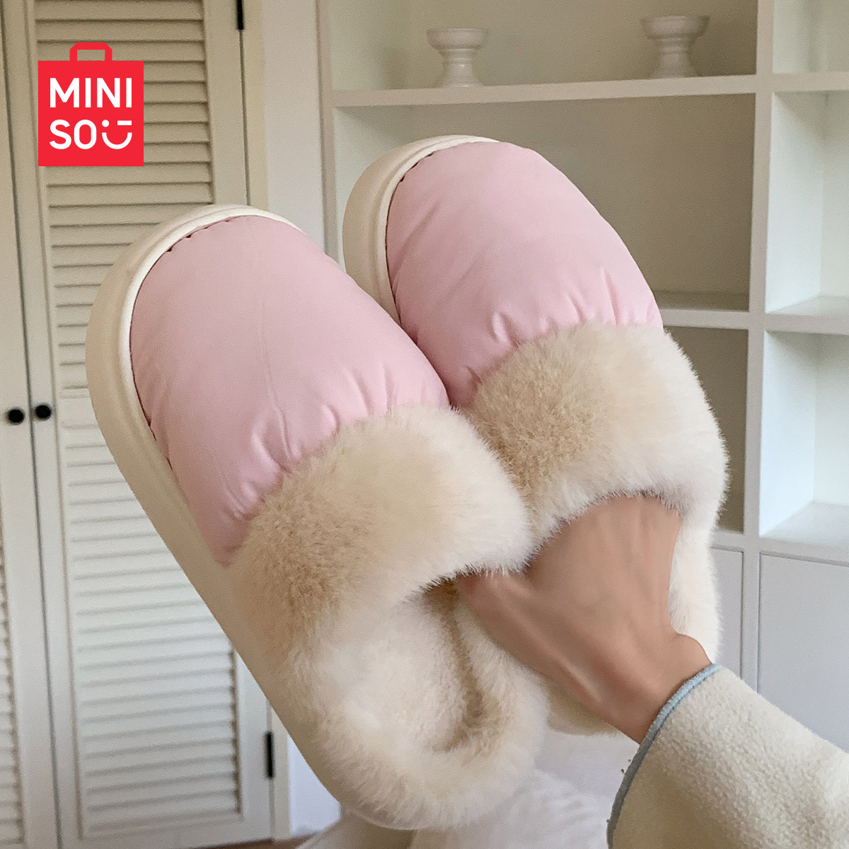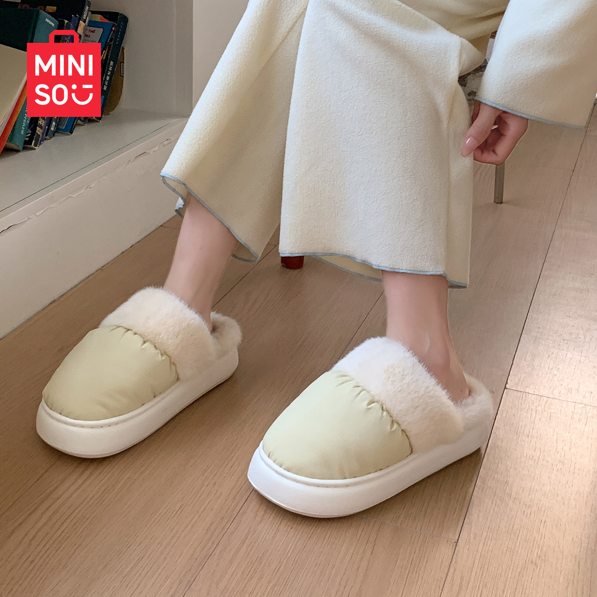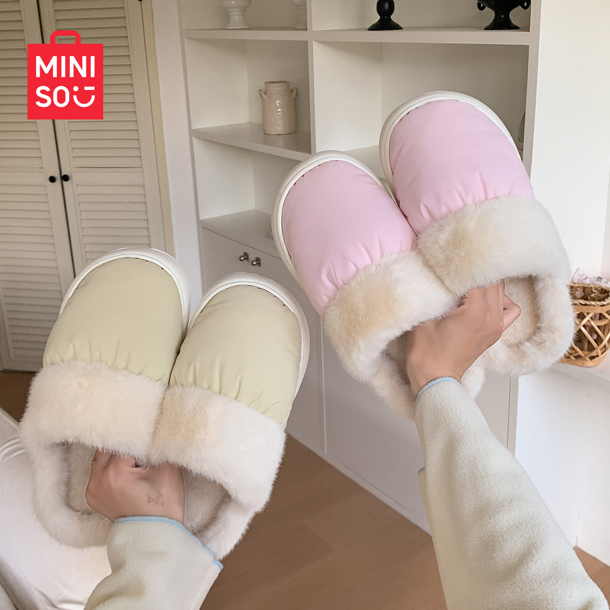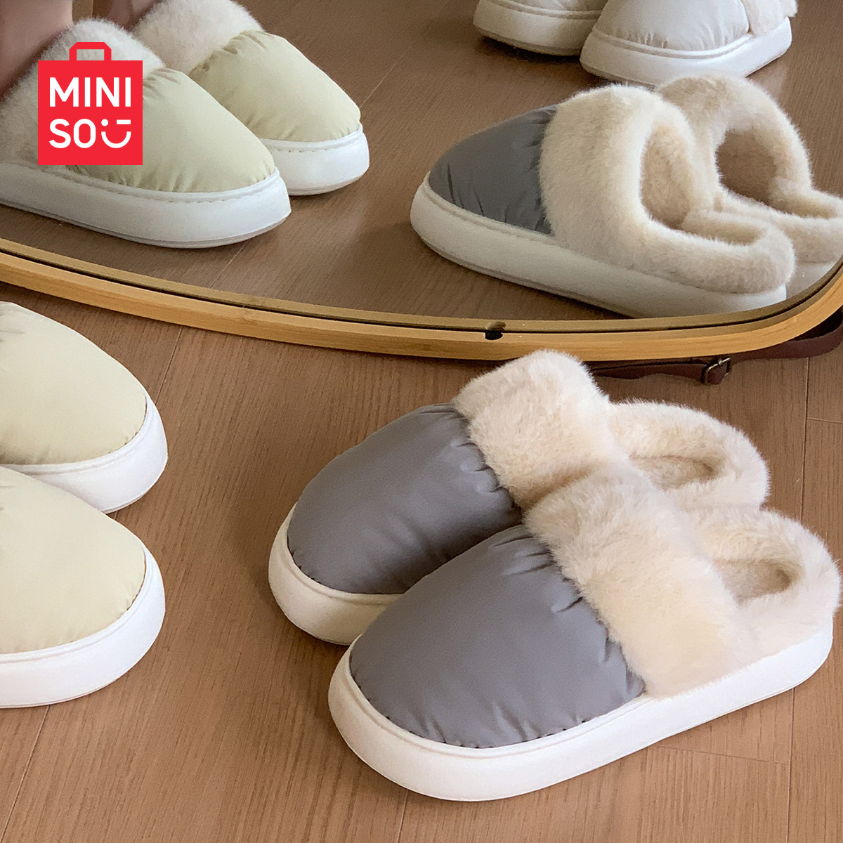 MINISO名创优品冬季棉拖女外穿简约居家全包保暖厚底棉鞋包跟情侣,上海