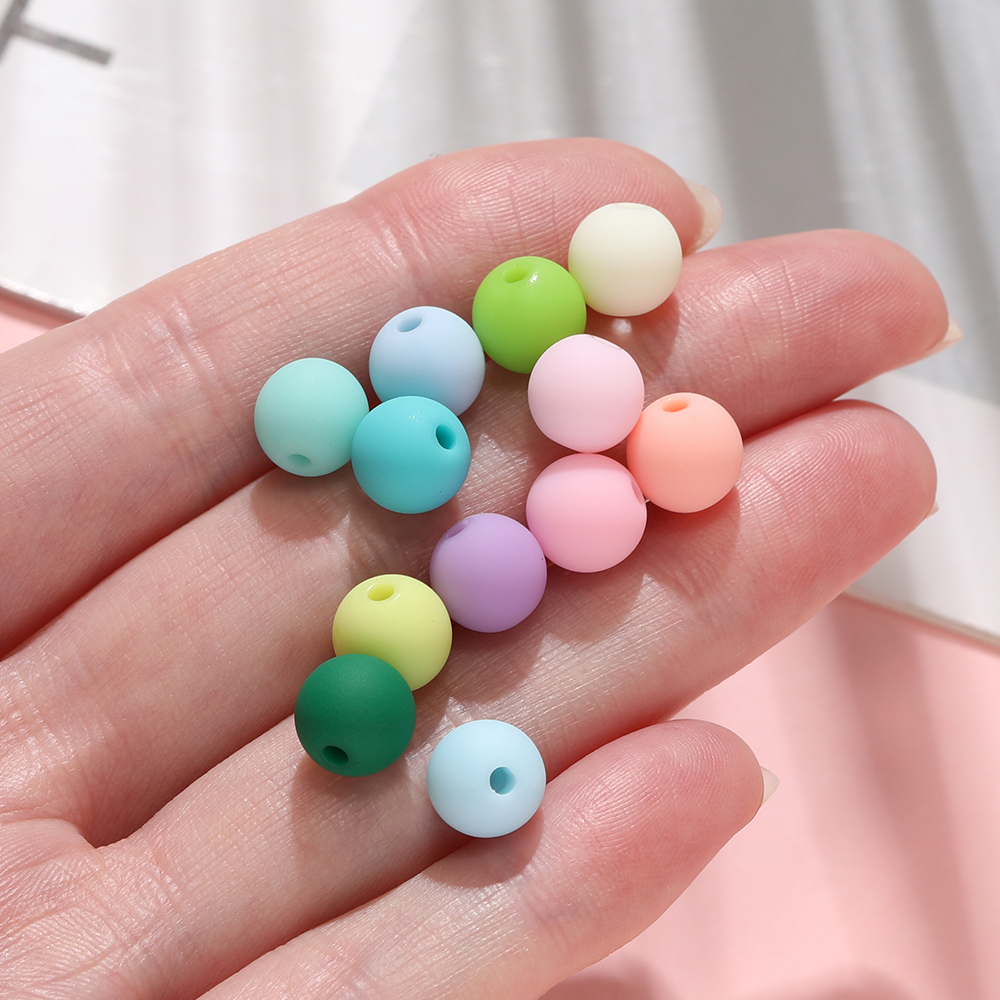 亚克力彩色混色肤感手感漆珠圆珠手工串珠diy手串手机链饰品材料