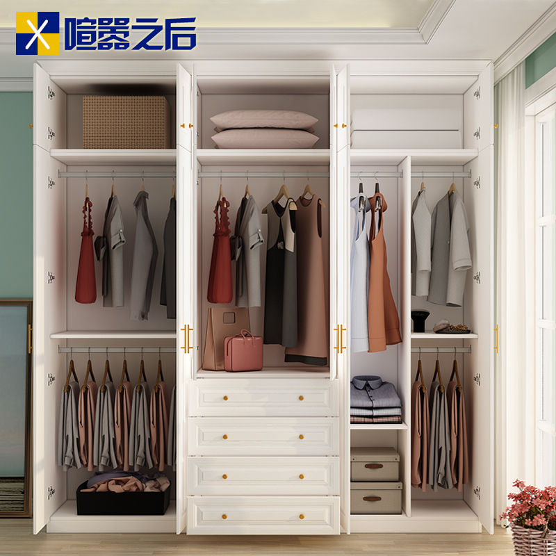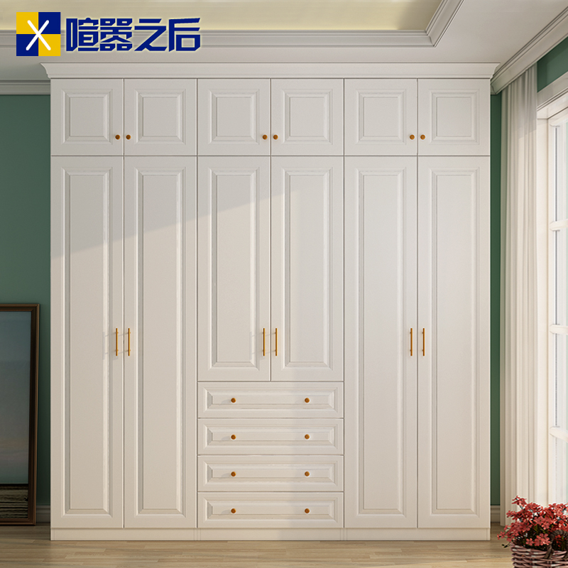 现代简约平开门衣柜家用卧室大衣柜组合带顶柜定制收纳柜8A-202