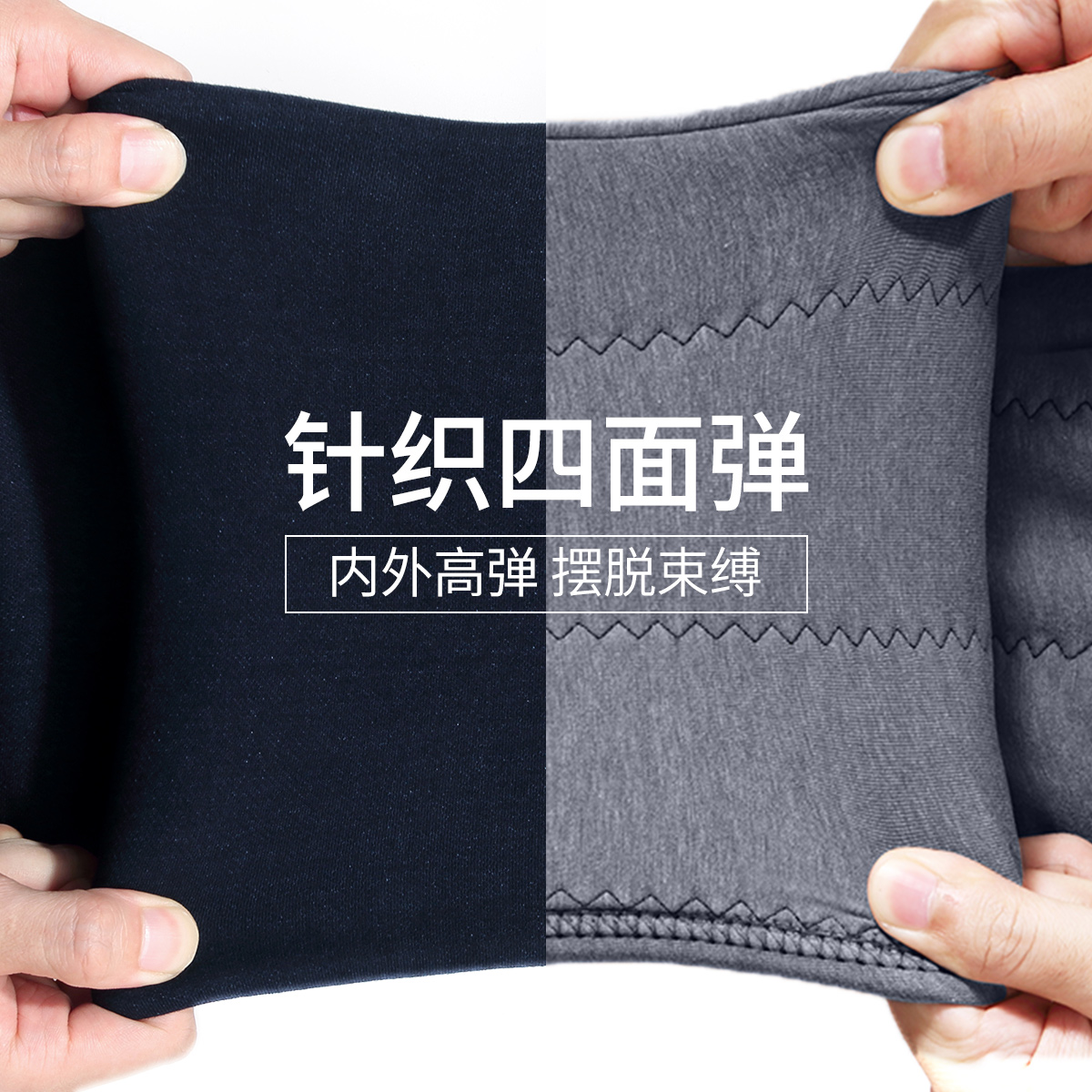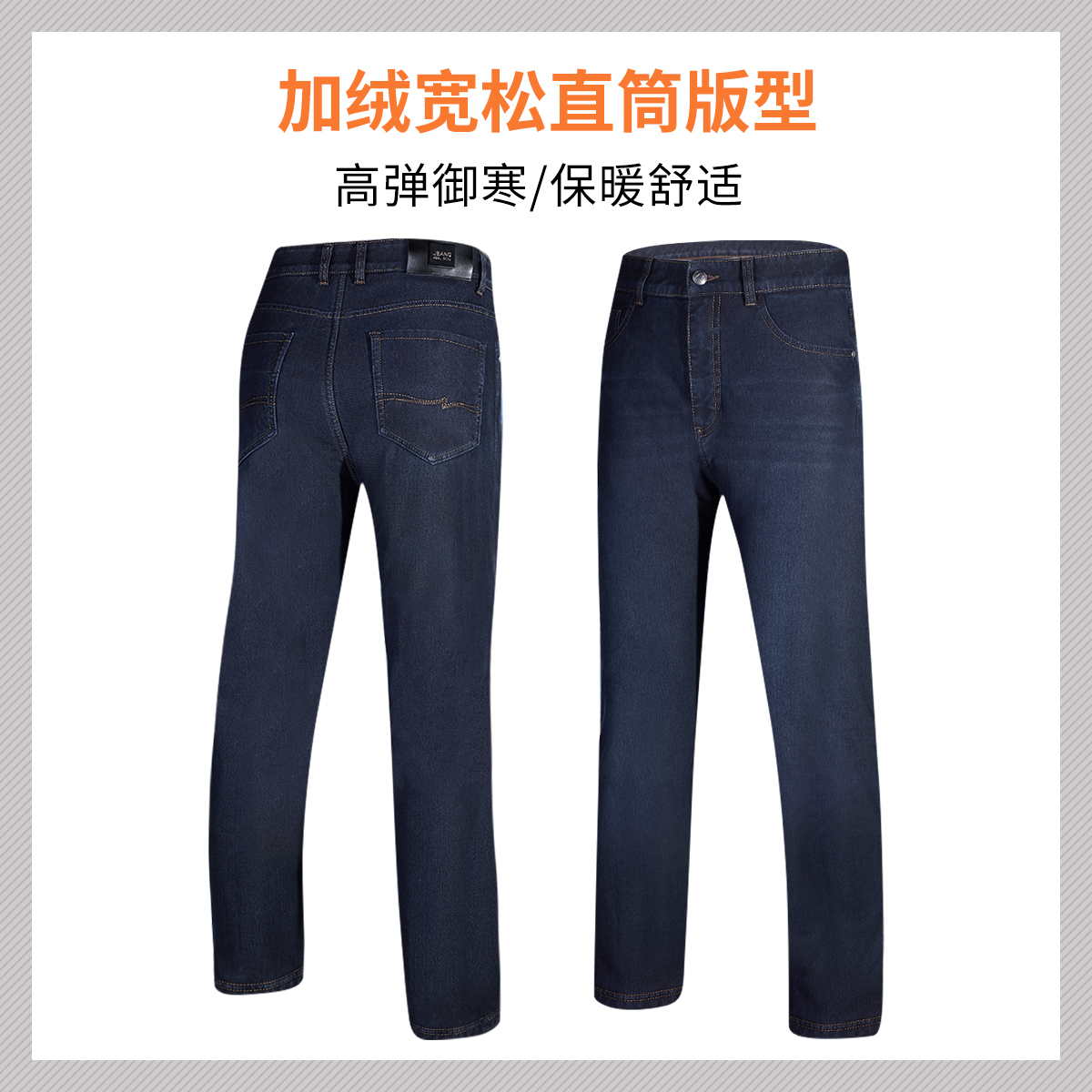 捷纯冬季款羊绒裤加绒加厚宽松直筒羽绒高腰保暖棉裤弹力牛仔裤男