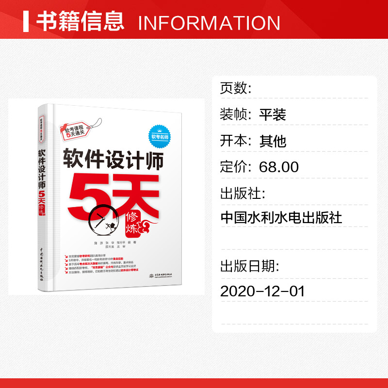 软件设计师5天修炼 施游,张华,邹月平 编 计算机考试其它专业科技 新华书店正版图书籍 中国水利水电出版社,广东 清远
